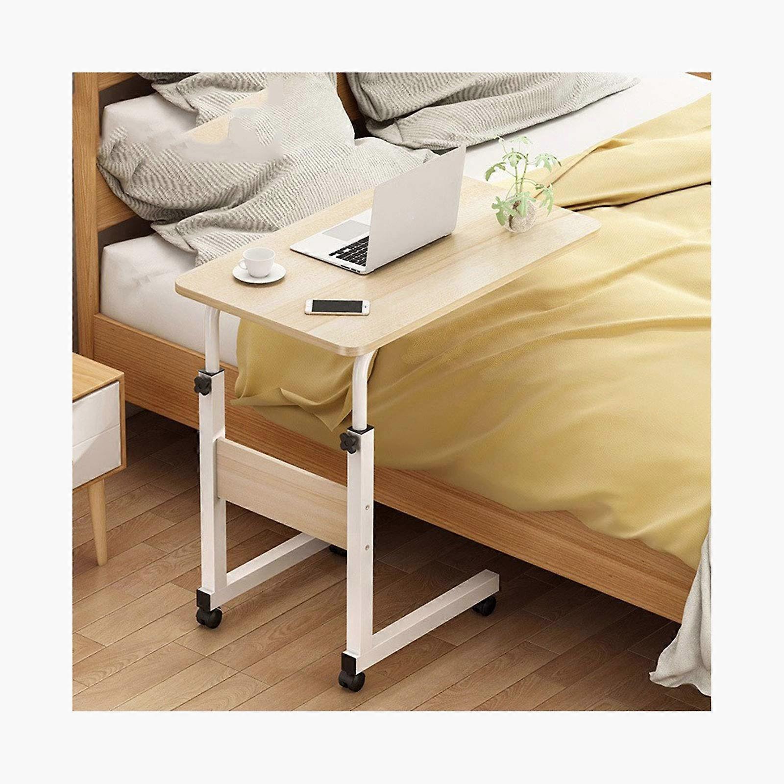 Overbed Table with Wheels Adjustable Laptop Desk for Bed and Sofa Maple Cherry 60x40