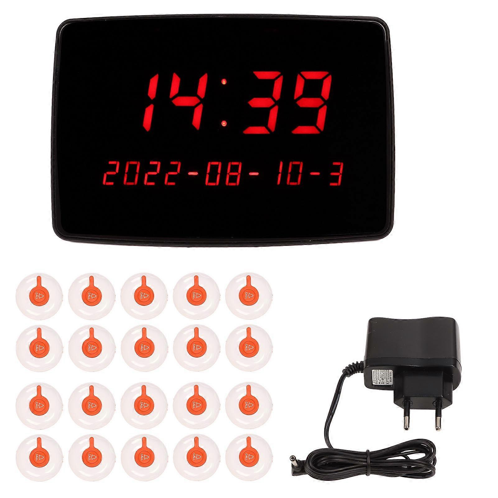 Patient Pager System with 20 Waterproof Call Buttons and Adjustable Volume for EU Plug