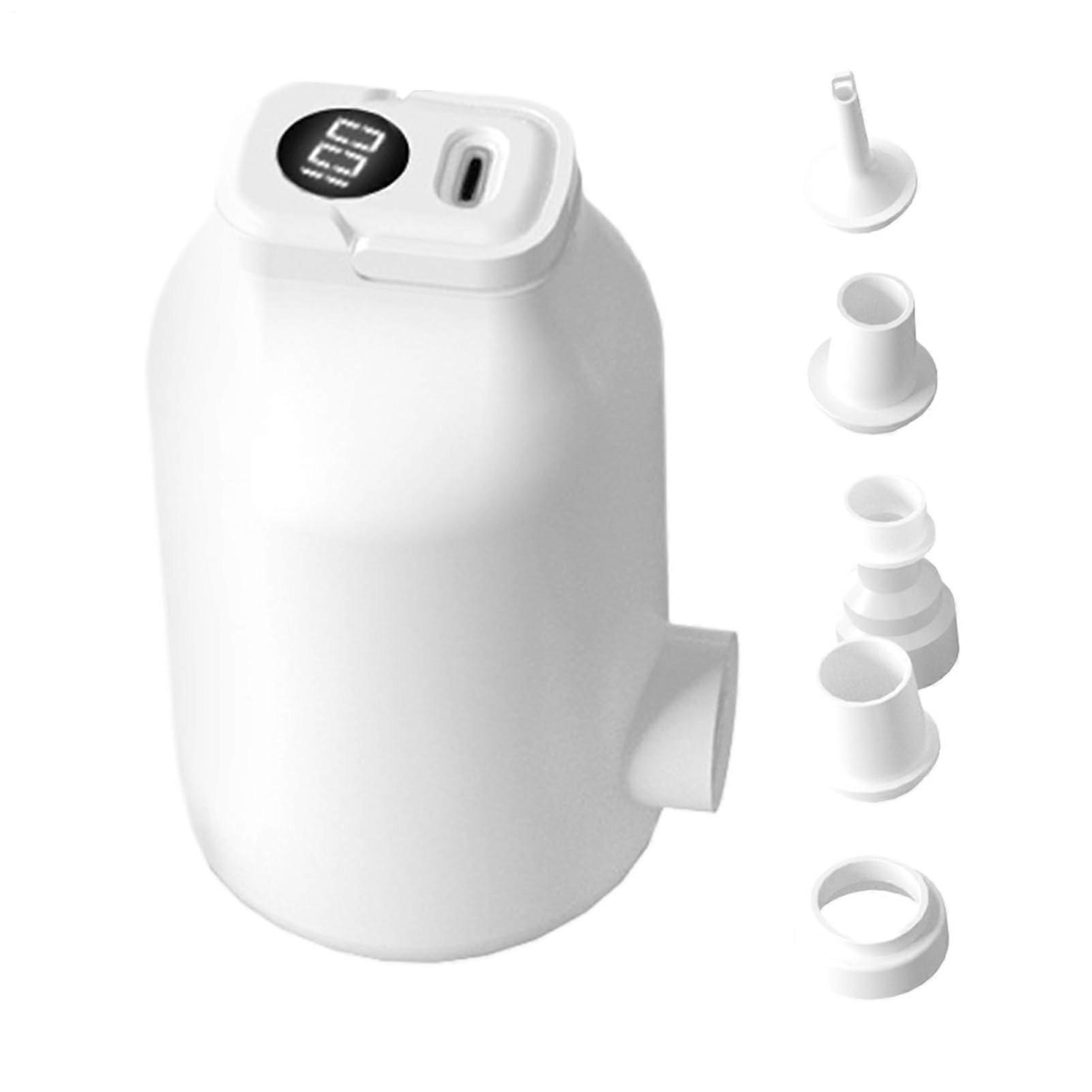 Portable Electric Air Pump for Inflatable Items – Compact 5 Nozzle Design for Camping, Travel, Tent Use, and Family Gatherings – White