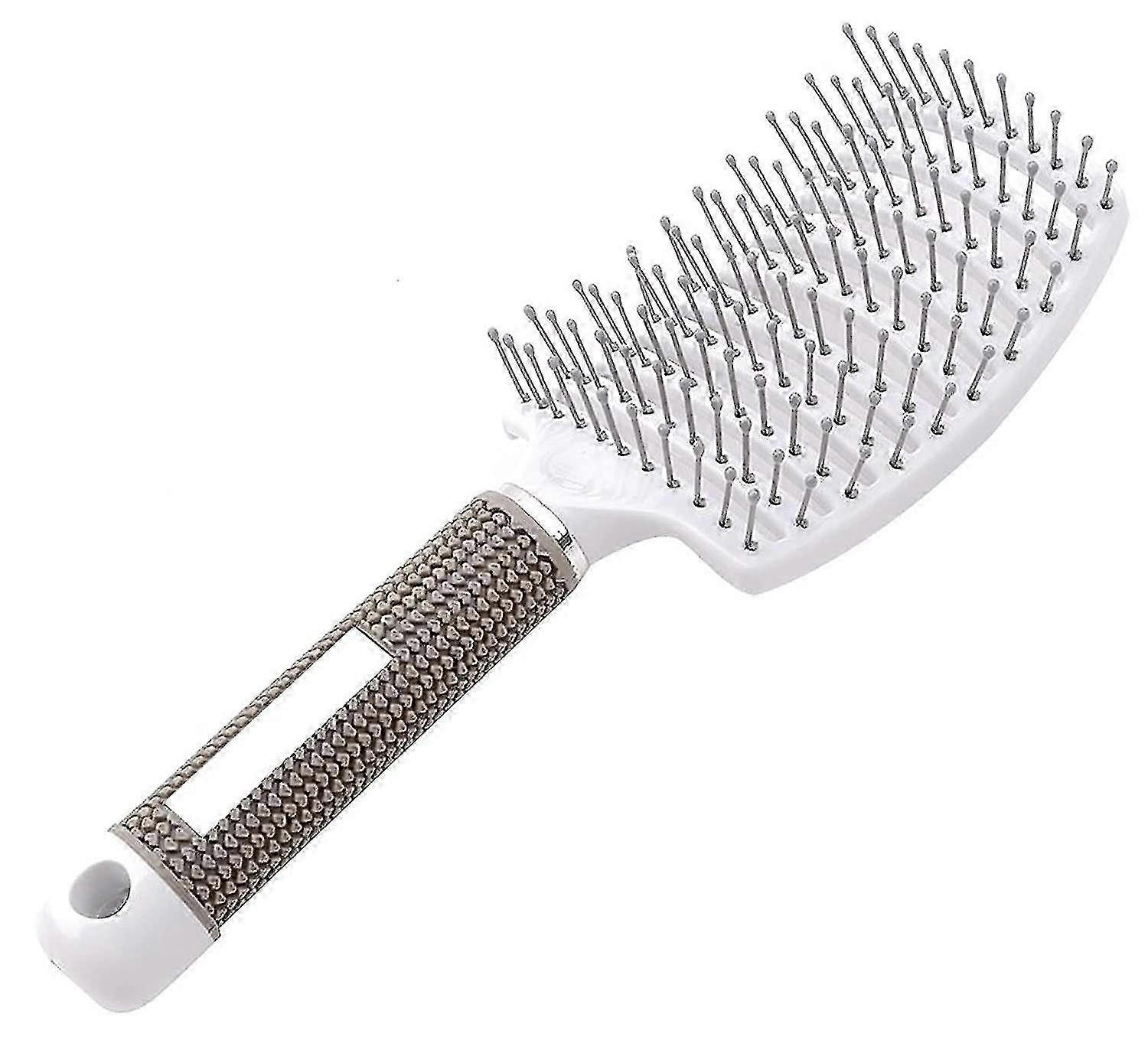 1. Perfect for women with all hair types and does not cause breakage or pull strands out 2. Great Brush for detangling, styling, blow drying, brushing & scalp massage 3.Large vented hair brush, allows more heat to flow to the hair shaft, reducing drying time 4. Ultra-light and perfectly shaped paddle brush; Rubber studs handle doesn't slip from your hand when wet. 5. Curved shape design allowing optimum contact points and angles with the scalp, round ball tips for comfortable combing