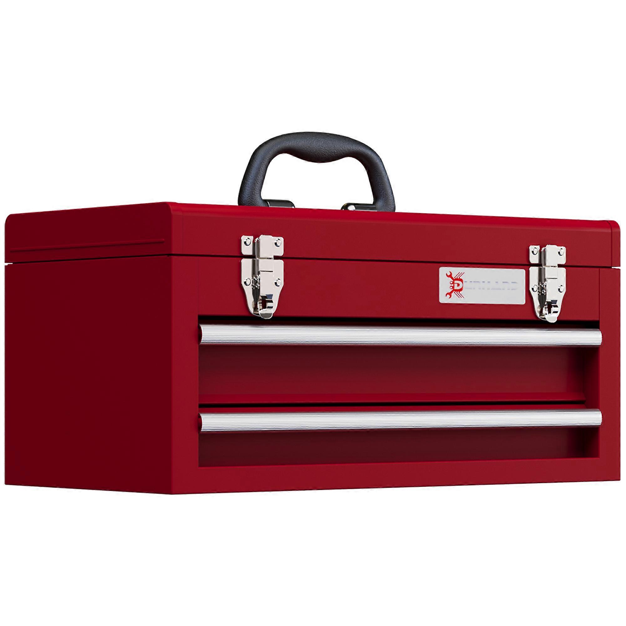 Red Steel Tool Box 2 Drawers Locks Upper Storage Handle
