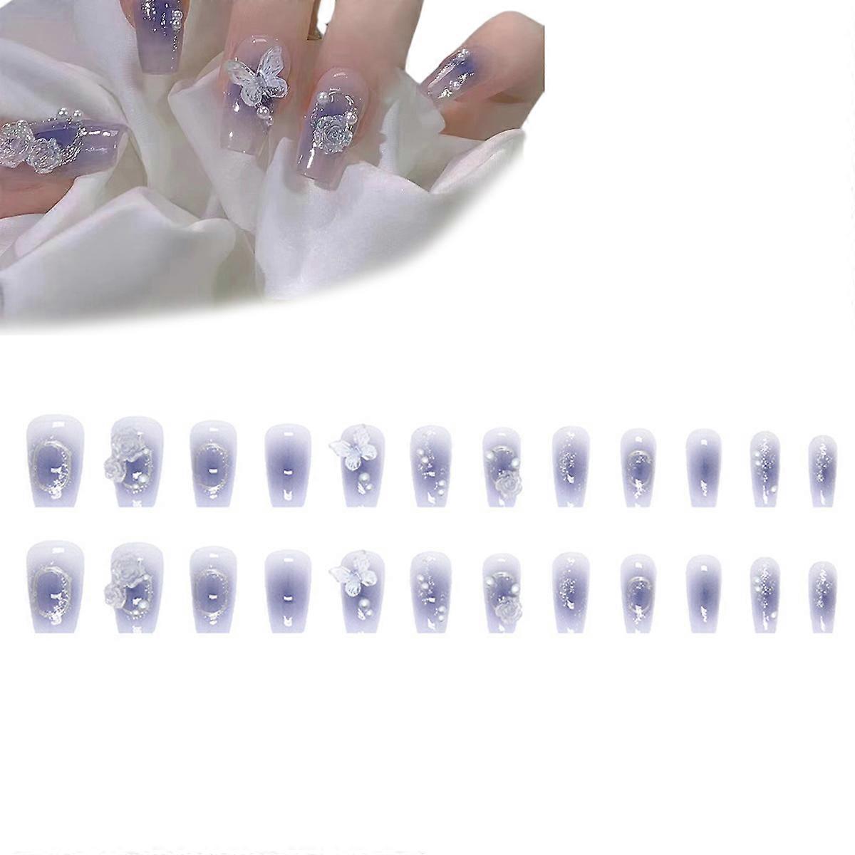 Salon-Quality DIY Manicure Set, 24Pcs Butterflies Design Glossy Reusable Nail Ornaments, Long-Lasting Gel Polish for Creative Nails at Home