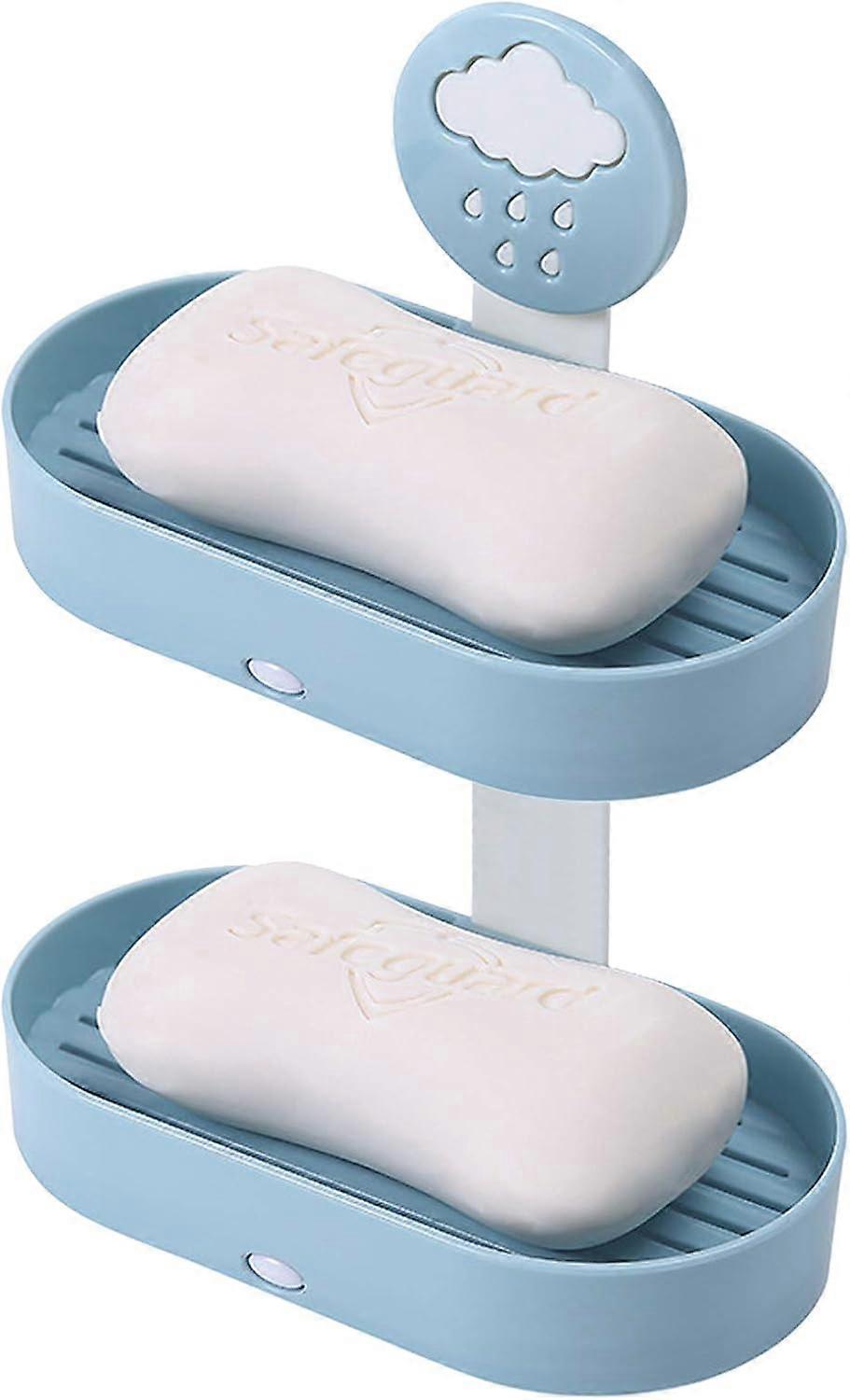 Cute soap rack wall removable soap box shower room soap rack double soap bar tray drainage