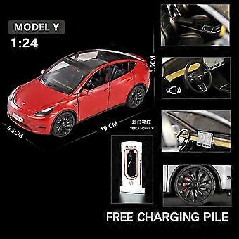 1/24 Schaal Tesla Model Y Legering Speelgoed Modelauto Diecast Pull Back Voertuig Model Met Geluid Licht Speelgoed Voor Jongen Verjaardagscadeau Souvenir