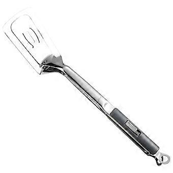 Grillklem van 304 roestvrij staal, 34 cm, dubbelzijdige spatel/voedselklem voor barbecue, kamperen en picknicken – met drukknop omhoog/omlaag (grijs)
