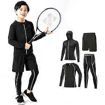 AWZXDE Jongens Sportieve Basislaag Set Thermische Compressie Hardloopshirts en Leggings Performance Outfit voor Kinderen Grijs, 4-5 Jaar