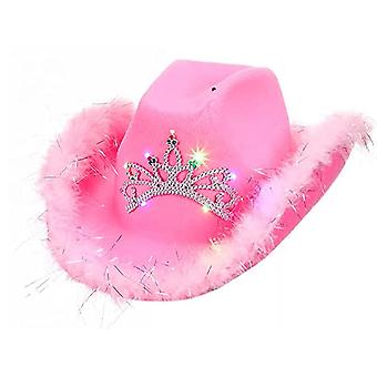 Roze kroon Cowboy hoed vilt Cowboy hoed met lichten nek Draw String Cosplay Party kostuum accessoires spelen aankleden voor vrouwen