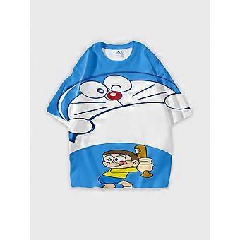 T-shirt ronde hals Cartoon Pattern losse korte mouw O31