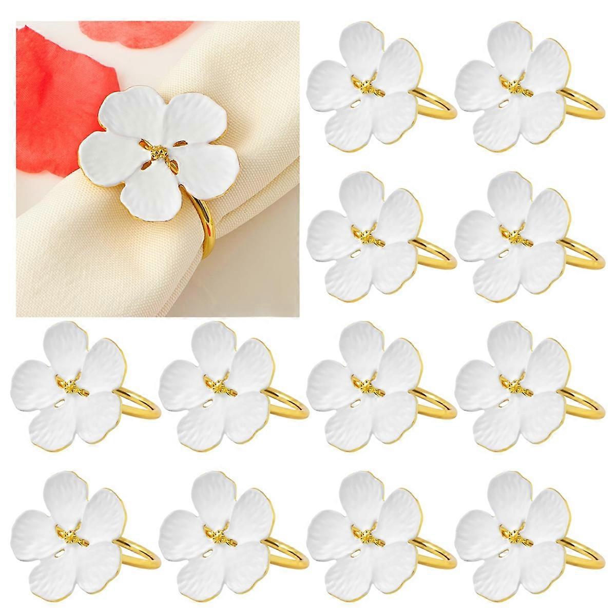 Flower Napkin Rings Set of 12 -White and Gold Floral Metal