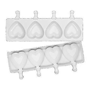 Silicone Ice Cream Mould 4 Hole Heart Shape Popsicle Mould Freezer Ice Cream Maker