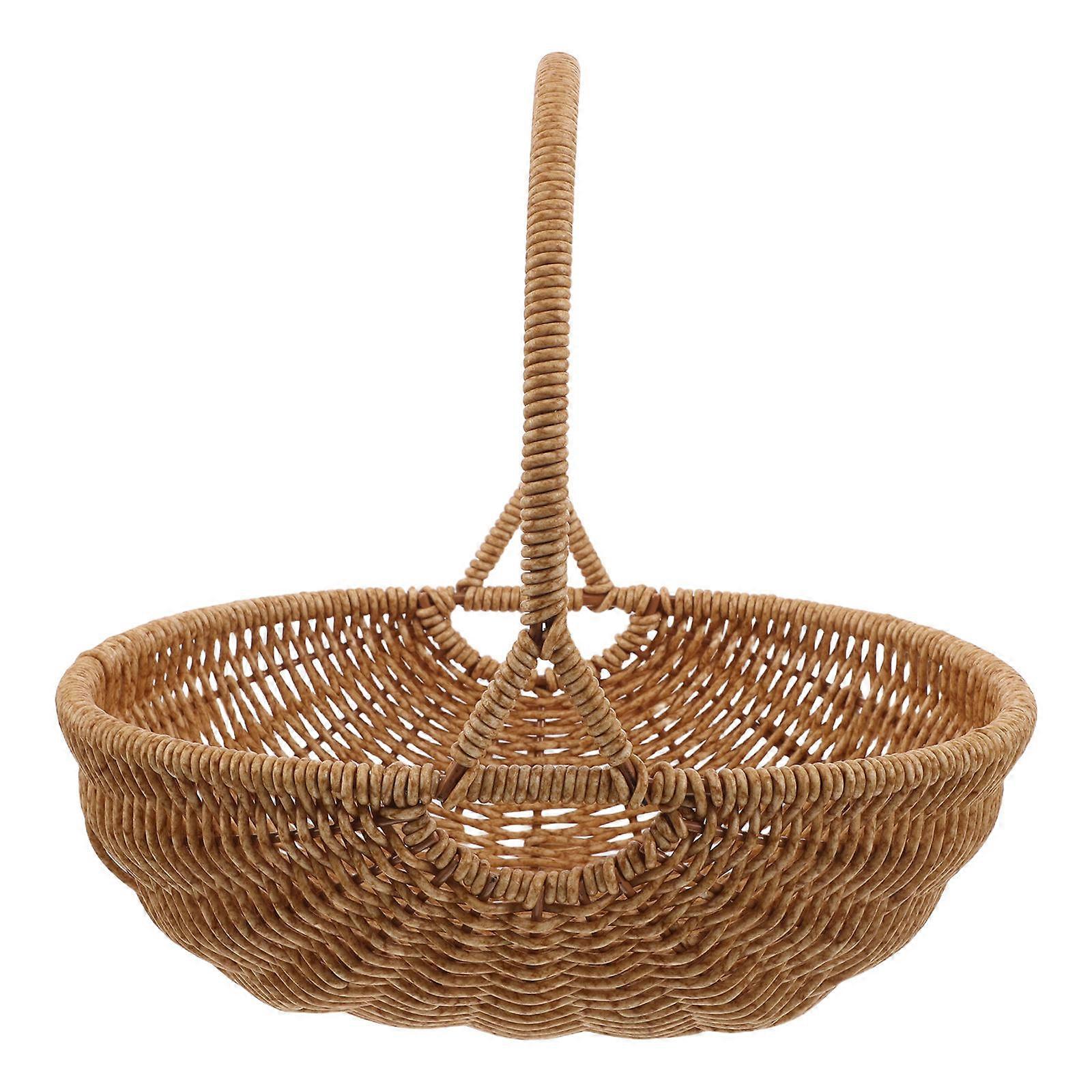 Simulation Rattan Woven Basket for Storage Hand Woven Basket Light Brown