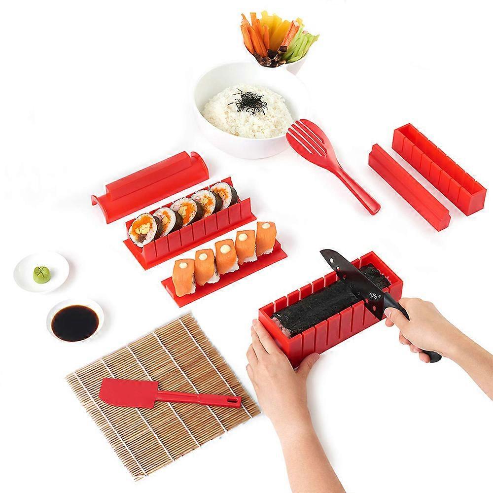 Fun, easy and delicious homemade sushi.Can be used for children and parents to quickly make sushi rolls. Complete set of ten pieces.Use a hand-torn roll filled with your favorite ingredients to leave a deep impression on your friends and family. This sushi mold has a smooth surface that prevents sticking and is easy to clean. An interesting family experience.Provide sushi sets for children and parents. Make delicious sushi quickly and save your loved ones time in restaurants.