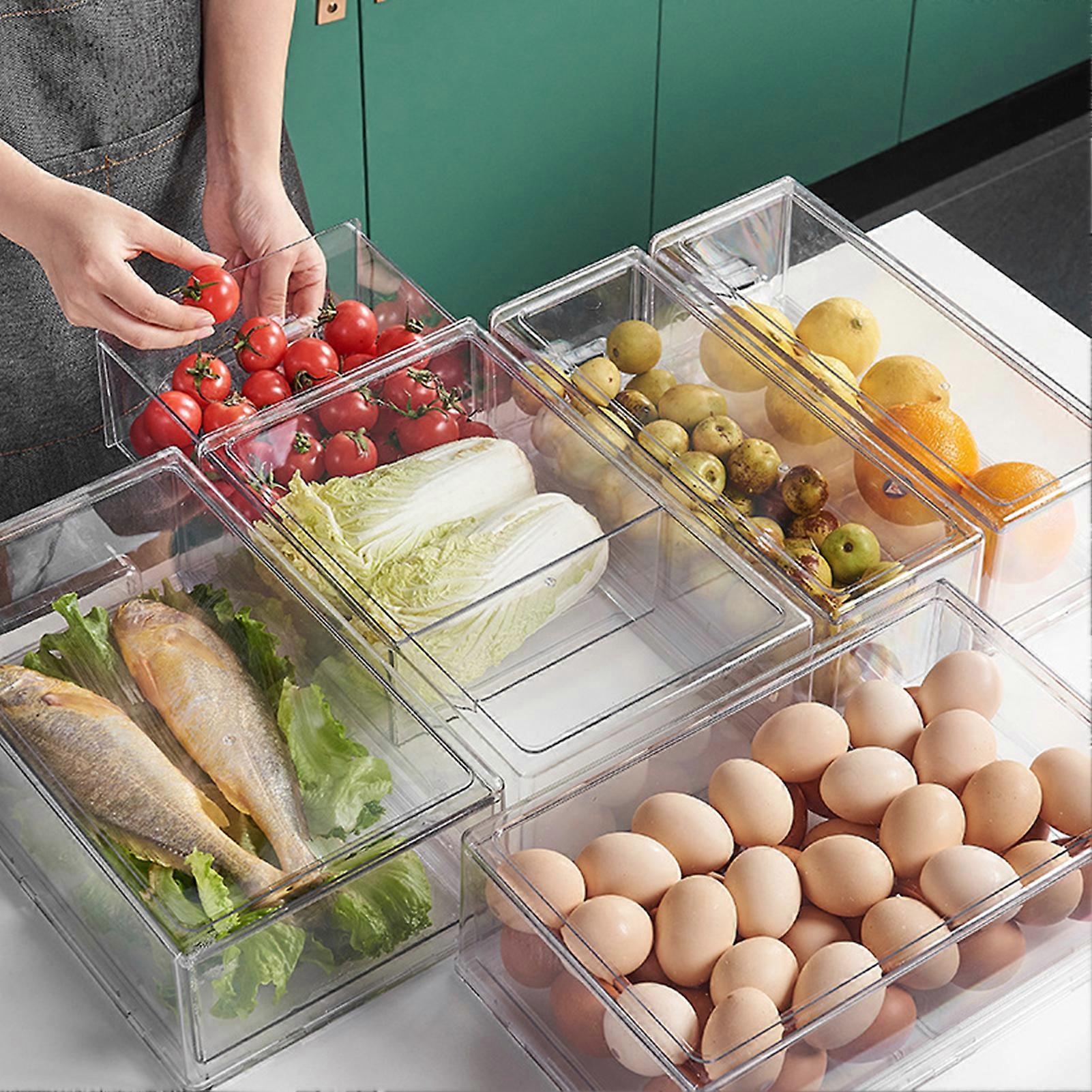 SUSUchens Stackable Fridge Organizer Bin Drawer Storage Container Transparent Design Large Capacity Dustproof Sundries Storage Box Clear