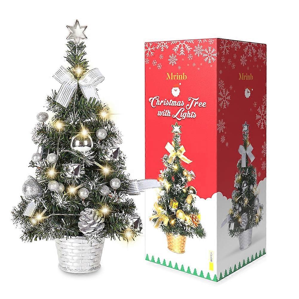 Tabletop Pre-Lit Mini Christmas Tree,Artificial Small Christmas Tree With LED String Lights for Christmas Tabletop Party Decoration (17.7inch)
