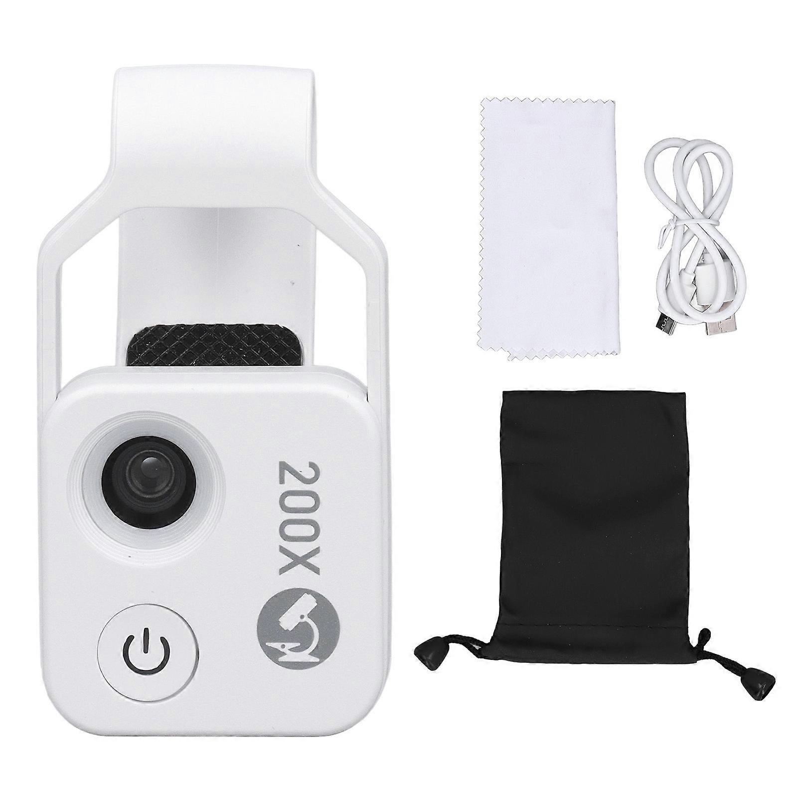 Phone Pocket Microscope 200X Zoom Phone Microscope with LED Light Universal Clip 5V 1A White