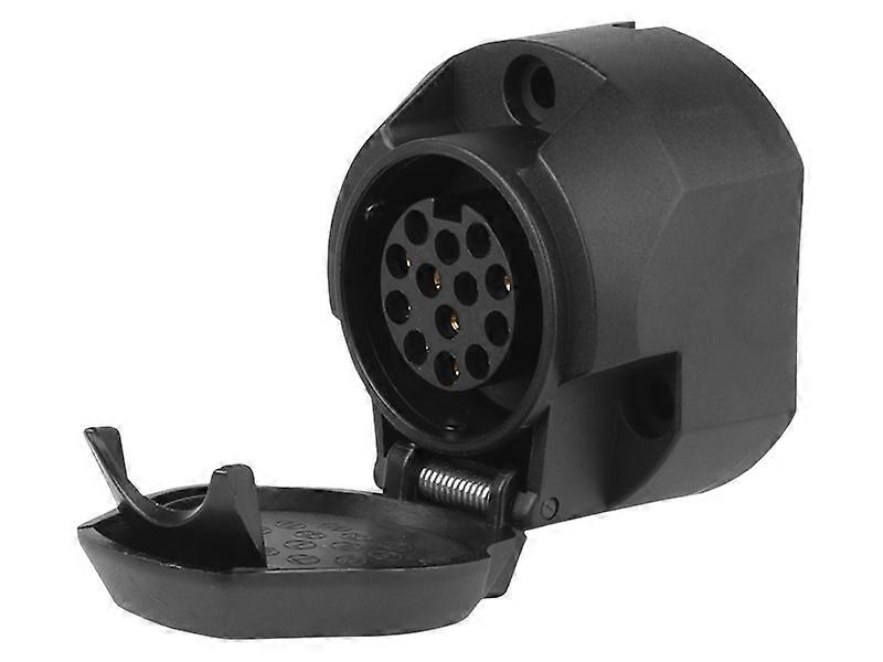GNIAZDO 13 PIN / bolcowe - uniwersalne 12/24V do zastosowania w samochodach osobowych, dostawczych, zabudowach itp. materiał: tworzywa sztuczne pasuje do wszystkich wiązek elektrycznych haka holowniczego z gniazdem 13 biegunowym styki wykonane z mosiądzu z przecięciami krzyżowymi