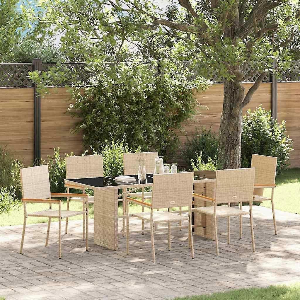 Garten Essgruppe 7 pcs Beige Poly-Rattan