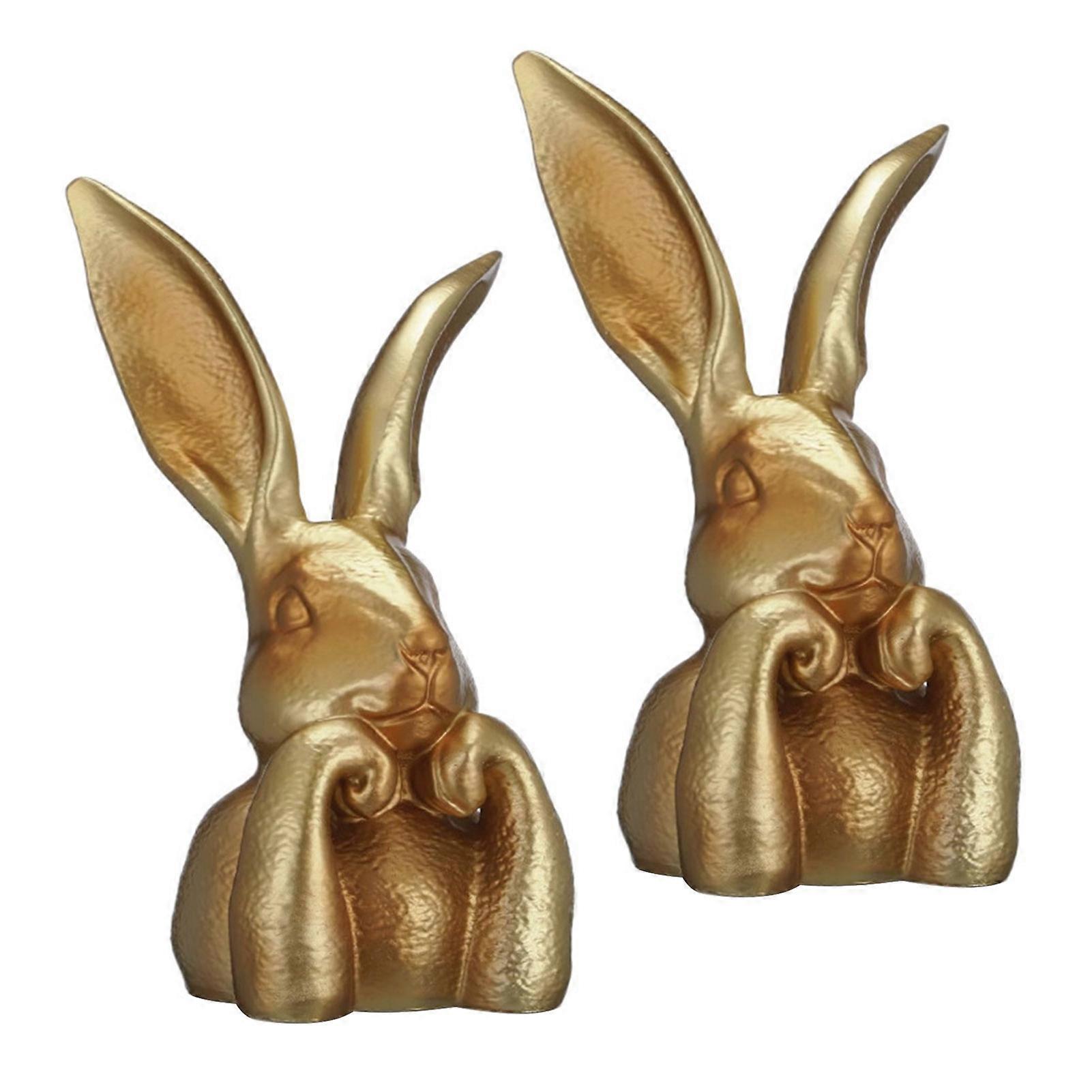 Premium Synthetic Resin Construction: Crafted from high-quality synthetic resin, this bunny figurine offers a substantial, thick feel that impresses both visually and tactilely. The durable material ensures long-lasting beauty and resilience, making it a treasured decorative piece for years to come. Ideal Size for Table Centerpiece: Designed with perfect proportions, this large resin statue serves as an eye-catching centerpiece for Easter or spring-themed tables. Its size complements mantel displays, shelves, and entryways, enhancing living rooms and dining areas with seasonal charm. Elegant Gold Finish with Intricate Detailing: Featuring a lustrous gold coating and finely engraved patterns, this rabbit figurine radiates sophistication. The exquisite craftsmanship highlights every contour, adding a luxurious touch that elevates any home décor style. Versatile Seasonal and Year-Round Decor: This classic Easter bunny blends effortlessly into springtime decorations while maintaining timeless appeal throughout the year. Its elegant design complements various interior styles, making it a flexible addition to your home's aesthetic. Thoughtful Gift for Special Occasions: Perfectly suited as a gift for housewarmings, Easter celebrations, Christmas, or for collectors of vintage-inspired home accessories. This charming figurine delights recipients who appreciate unique holiday collectibles and refined decorative art. Description: This high-quality resin bunny figurine features a thick, heavy texture that impresses both visually and to the touch. Expertly crafted with intricate engraved details and a lustrous gold finish, it adds an elegant charm to any space. Perfectly sized as a large table decoration, it serves as a stunning centerpiece for Easter or spring celebrations, enhancing mantels, shelves, or entryways in living and dining rooms. Its versatile design blends classic Easter themes with year-round home decor, making it a timeless decorative art piece. An ideal gift for housewarmings, holidays, or collectors of vintage-style accessories. Item Name: Bunny Figurine Material: Synthetic Resin Features: Elegant, Charming, Delightful, Stunning, Adorable Size Details: Size: 20cm x 8.4cm x 7.8cm/7.87" x 3.31" x 3.07" (Approx.) Notes: Due to the light and screen setting difference, the item's color may be slightly different from the pictures. Please allow slight dimension difference due to different manual measurement. Package Includes: 1pc: 1 x Bunny Figurine or 2pcs: 2 x Bunny Figurine