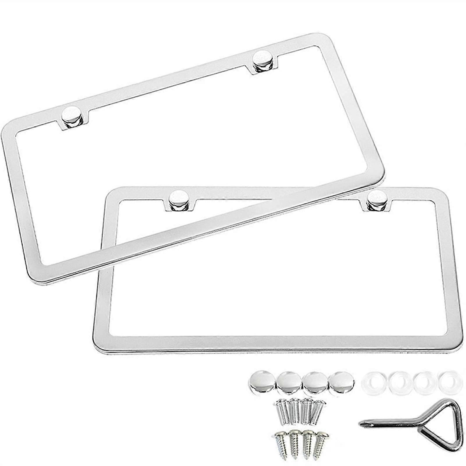 Universal license plate holder, 2 pcs, silver stainless steel, chrome screw caps