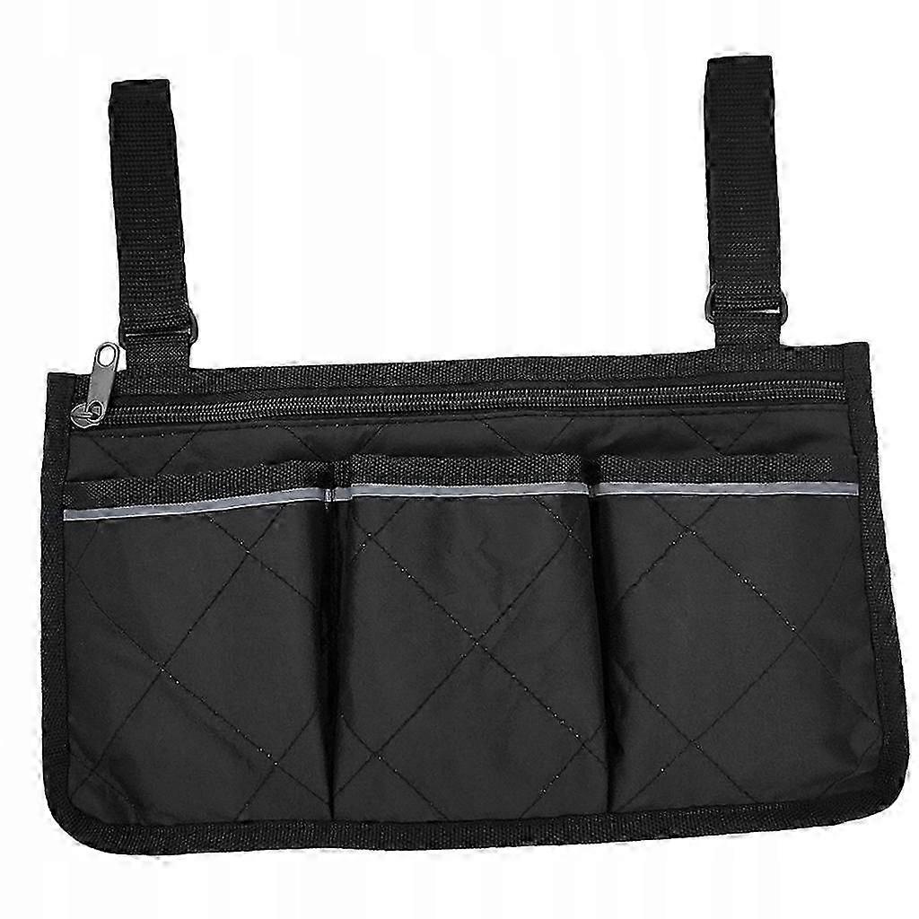 For use with wheelchairs with full armrest only. NOT for use with wheelchairs with short armrests. The entire wheelchair bag measures 32.5*18cm/12.8*7.08cm This side armrest bag is made of durable nylon material with waterproof function and equipped with extremely durable zippers. You can easily attach and remove the storage bag thanks to the durable adjustable straps for long time use. We have also added reflective strips to the wheelchair pockets to make the item visible at night from up to 300 feet away, helping to keep users safe and secure. The items on our listings come from inventory surpluses or consumer returns.