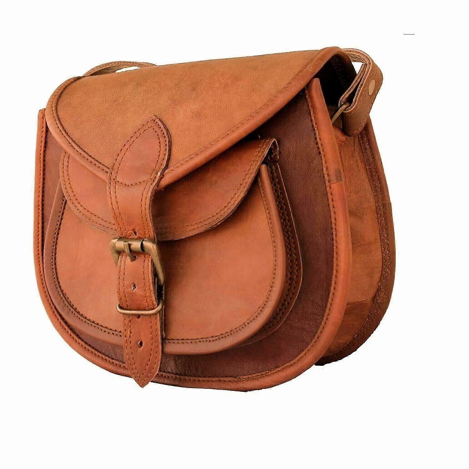 Vintage Saddle Bag Genuine Goat Cross-body Bag Leather Brown Messenger Shoulder