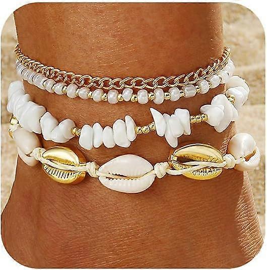 Women's Shell Anklet Set, Adjustable Anklet, Hawaiian Beach Shell Jewelry Gift