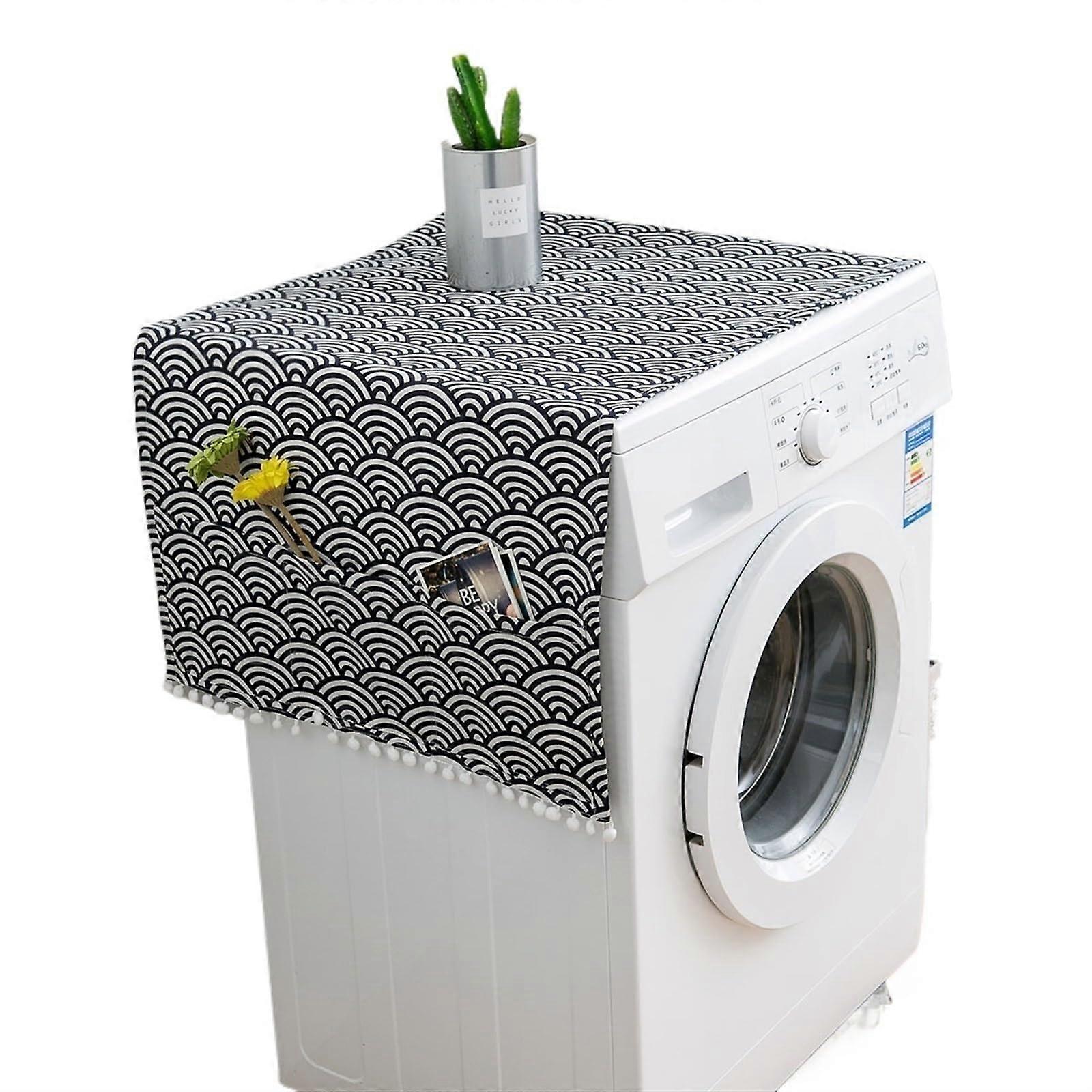 Washing Machine Cover Dustproof With Black Linen Print, 70x170cm S43834, Fits Washer, Refrigerator, Microwave