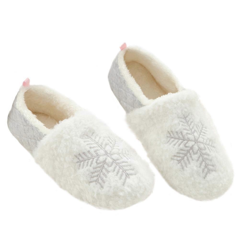 Winter Warm Slippers With Snowflake Design Plush Inner Material Comfortable For Home Use 1 Pair