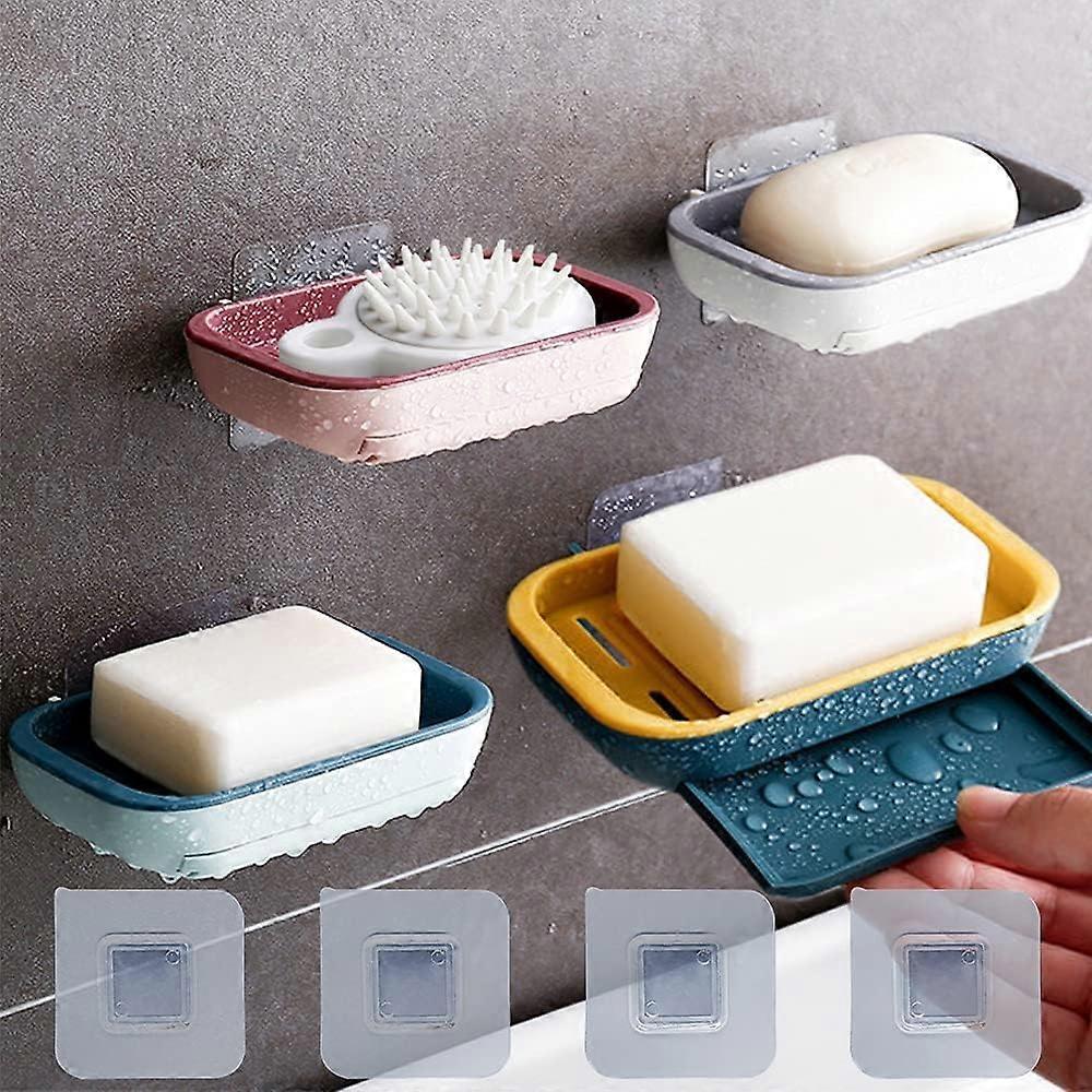 Soap Dish With Drain,4Pcs Soap Dish Keep Soap Dry, For Kitchen, Bathroom And Shower Room.3 Colors,Wall Mounted Adhesive Soap Tray -No Nail No Drilling